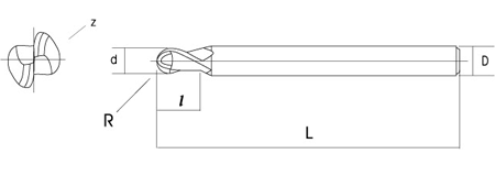 直徑d 刃長(zhǎng)l 全長(zhǎng)L 柄徑D R徑 刃數(shù)Z |