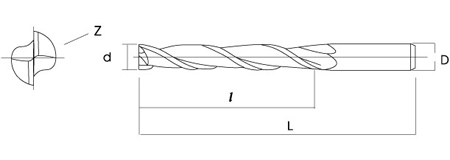直徑d 刃長l 全長L 柄徑D 刃數Z